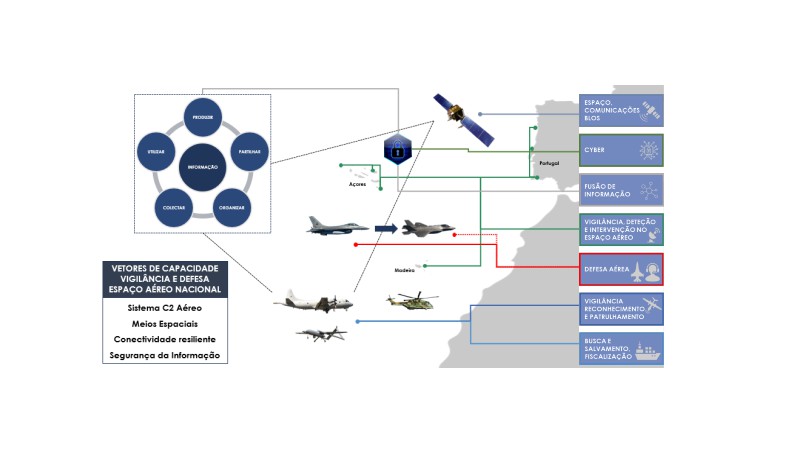Assim, para ser efetiva, a Força Aérea necessita de: (1) um sistema de Comando e Controlo, que integra os meios de luta aérea e de vigilância e as Estações de Radar, visando garantir a soberania do território; (2) meios espaciais para assegurar a vigilância, a comunicação, a navegação e outras funções militares; (3) conetividade resiliente para garantir a fusão dos dados; e (4) a integração dos anteriores vetores numa rede segura.