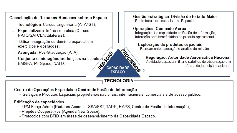 Tendo em consideração estes Vetores Estratégicos, é possível visualizar a Edificação da Capacidade Espaço segundo uma aproximação de Pessoas, Processos e Tecnologia.