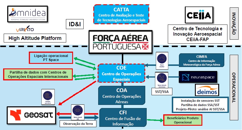 De igual forma, a Força Aérea continuará a investir no estabelecimento de parcerias com entidades do cluster aeroespacial português, como é o caso recente da parceria estratégica com o CEiiA, Neuraspace, Deimos, Omnidea e Geosat, para desenvolver projetos no domínio do Espaço.
