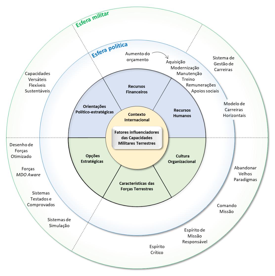 Regressamos ao ponto de partida: há vários fatores, exógenos e endógenos, que influenciam o desenvolvimento e a manutenção das capacidades militares terrestres. Desses, selecionámos um conjunto limitado, que nos pareceu ter maior relevância para o prosseguimento da presente reflexão. Na consciência de que existem outros fatores, temos segurança suficiente para afirmar não ter colocado de parte nenhum dos essenciais.