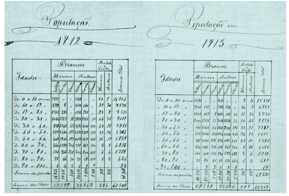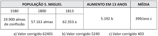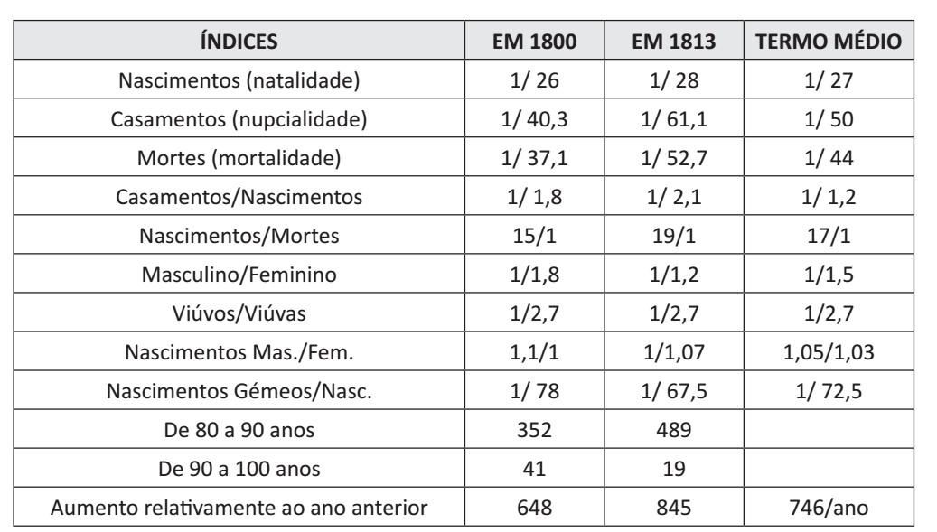 Do confronto entre os dois estudos, deduz-se um crescimento anual de 300 habitantes/ano entre 1795 e 1813.