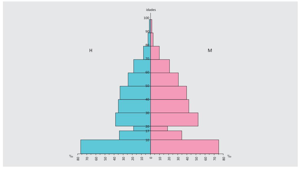 Gráfico 1 – Pirâmide de Idades com base nos elementos contidos no Quadro anterior