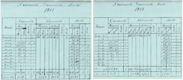 cado através de altas taxas de nupcialidade, natalidade e uma fraca taxa de mortalidade. No ponto seguinte, o nosso capitão engenheiro apresenta as estatísticas do movimento natural da população, através do valor dos nascimentos, casamentos, óbitos e, derivados destes, calcula a natalidade, a fecundidade, a nupcialidade, a relação por sexos, etc.