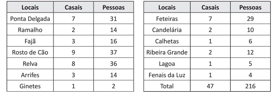 a) Faltam os números 1 e 6, talvez correspondentes à Ribeira Grande e a Rabo de Peixe. Estas omissões justificam a diferença entre os 5.964 e os 7.597 que Borges da Silva apresenta nos seus cálculos.