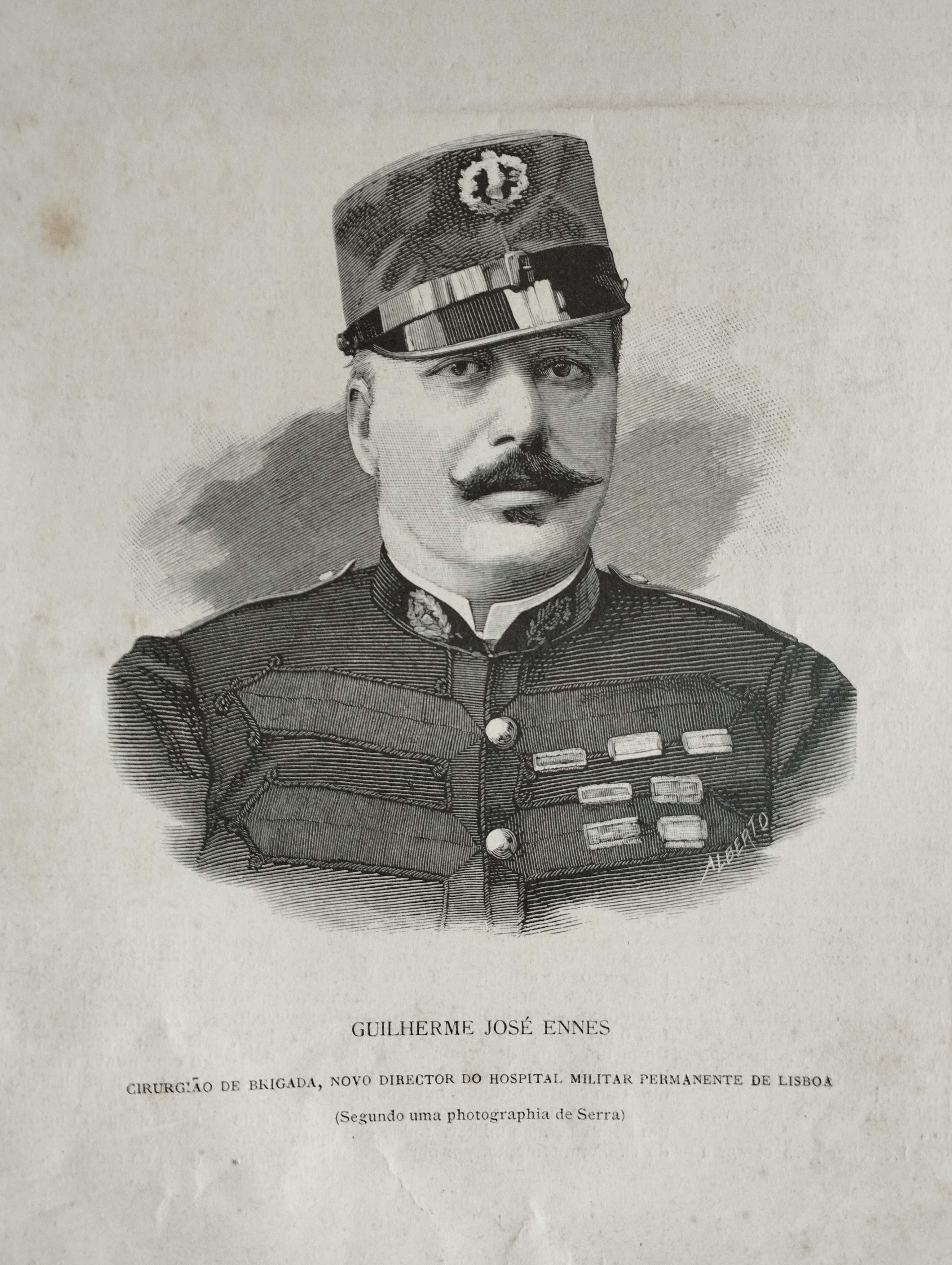 Cerca de 105 anos após a sua morte, o General de Brigada Guilherme José Ennes (GJE), é uma figura quase desconhecida pela generalidade do público, mesmo o especializado. É certo que Carlos Vieira Reis mencionou-o na sua notável História da Medicina Militar Portuguesa1; e ainda num passado recente, por exemplo, Luísa Villarinho Pereira relembrou-o, a propósito de memória militar e da acção dos militares na Ciência e nas Artes2, e dele fez uma extensa nota bio-bibliográfica ao escrever sobre a Escola Médico-Cirúrgica de Lisboa3; finalmente, poucos meses após a declaração da pandemia de COVID 19, Jaime Nogueira Pinto referiu-o em Contágios4, a propósito da crise sanitária de 1899 no Porto. Não obstante, apesar da sua acção pública e vasta obra escrita, GJE parece não ter escapado à lei da morte, situação para a qual pode contribuir o facto de estar ainda por fazer um estudo de fundo sobre a sua vida e obra; a de uma figura marcante da medicina militar e da saúde pública em Portugal, um dos poucos que, em finais do século XIX, se dedicou a estas matérias, como refere Ferreira de Mira reportando-se àquele período: “Sobre a especialidade de medicina militar escreveram quase sòmente […] Cunha Belem e Guilherme Enes [sic]. Um e outro, frequentemente de colaboração, intervieram em assuntos de higiene e defesa do país contra a importação de doenças infeciosas […]”5.