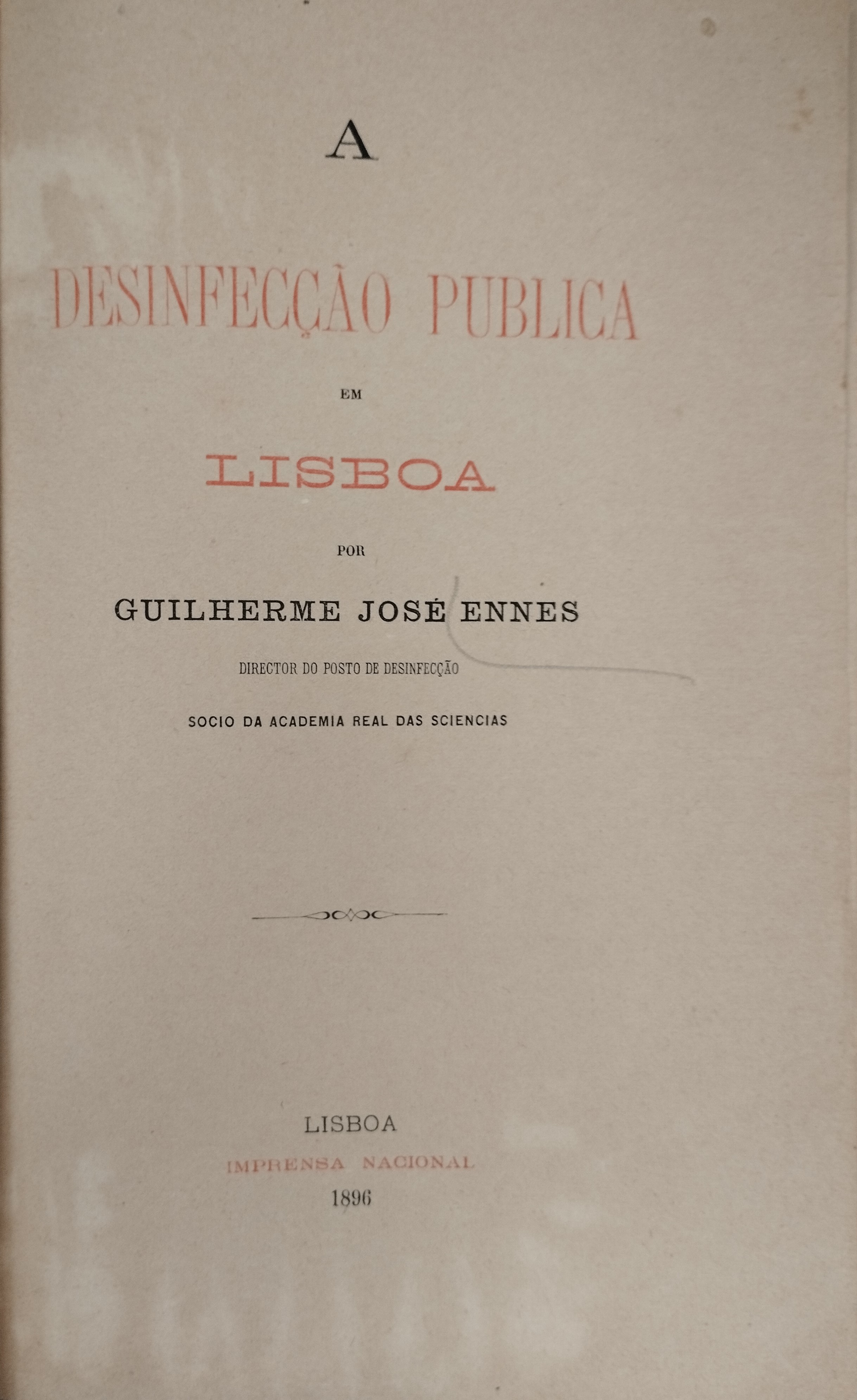 26) A DESINFECÇÃO PUBLICA EM LISBOA, por…, Director do Posto de Desinfecção, Sócio da Academia Real das Sciencias, Imprensa Nacional, Lisboa, 1896. Dim.: 22 cm (alt.); XII+231+II pp., ilustrado (3 extra-textos).