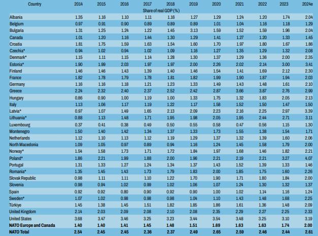 Sabemos que existem outras formas de mitigar os riscos de descontinuidade operacional de empresas que já deixaram o mercado, como ENGESA, ISHIBRAS, VEROLME e agora a AVIBRÁS está em recuperação judicial, colocando em situação difícil os projetos de defesa que contam com a inteligência tecnológica que lá estão em desenvolvimento. Desta forma, devemos esperar que os integrantes do Executivo e Legislativo fossem sensibilizados pelos movimentos geopolíticos e os volumes de Gastos com Defesa para a sustentabilidade financeira das empresas integrantes da BIDS. Assim, trago o gastos apresentados em Equipe NATO (2024):