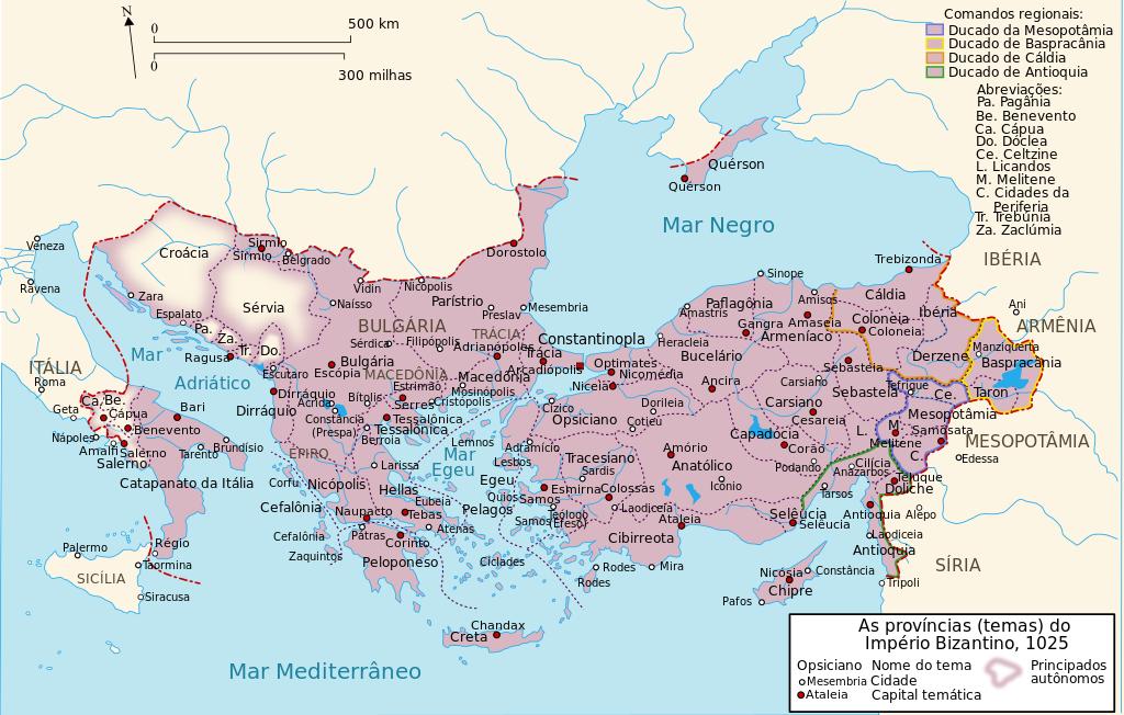 Figura 1 – Império Bizantino à morte do imperador Basílio II (1025).